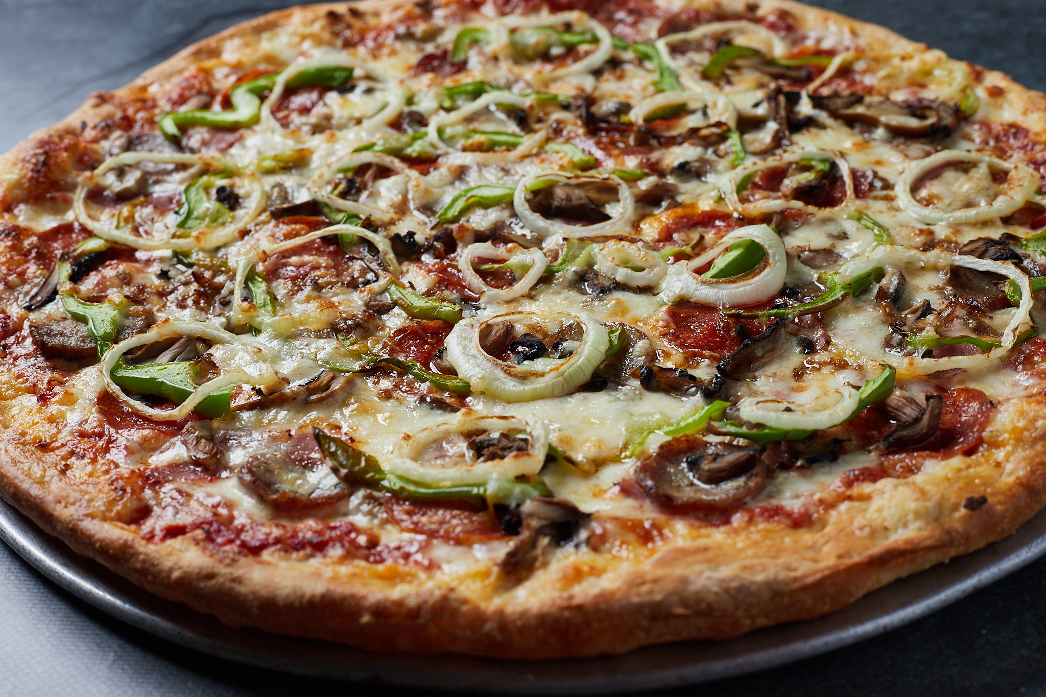 Pepperoni, Sausage, Mushrooms, Onions, Peppers